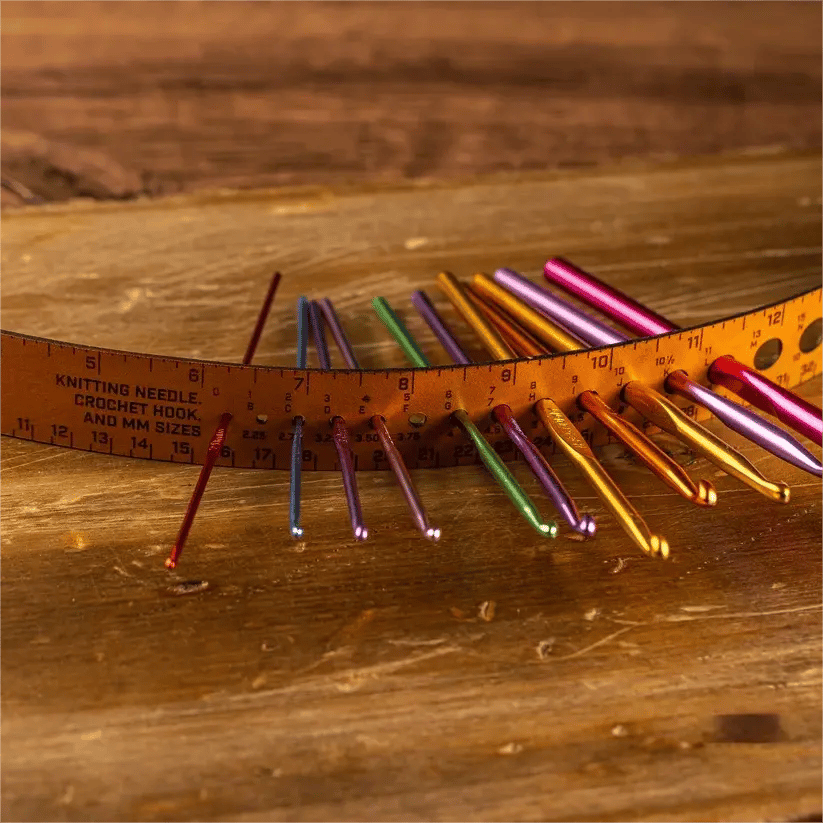 • Hook & needle sizer - Gauge holes for both crochet hooks and knitting needles